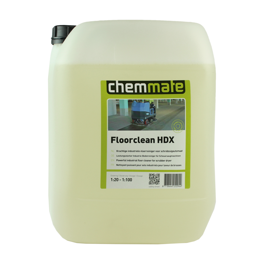 Floorclean HDX verwijdert snel en grondig oude polymeren waslagen, vetten, oliën en aangekoekt vuil en wordt vooral ingezet voor het reinigen van tegelvloeren, beton- en industriële vloeren.