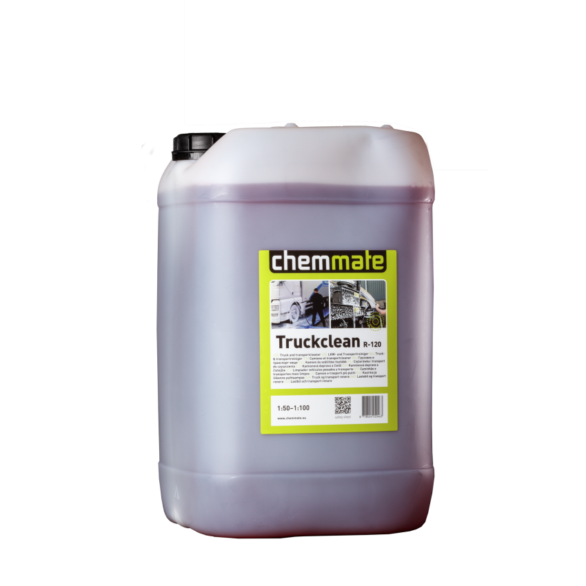 Unieke effectieve reinger (voorheen Truckcleaner RD-12) welke “road-dust”, roet- , koolstof-, vet en olievervuilingen (ook plantaardig) losweekt en verwijdert. Truckclean R-120 heeft een hoog zelfwerkend vermogen, bevat corrosie inhibitoren en geeft een mooie glans en “afparelend” eindresultaat.