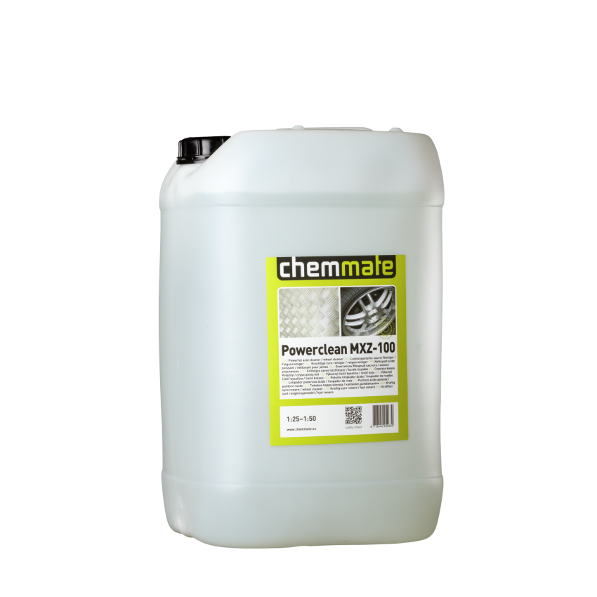 Periodieke sterk zure reiniger met ontkalkende, ontroestende en ontvettende eigenschappen. Powerclean MXZ-100 verwijdert zeer doel-treffend de zwaarste vervuilingen zoals kalk-, cement-, en betonsluiers, salpeterkringen, roest en vuil op alle zuurbestendige ondergronden. Tevens wordt Powerclean MXZ-100 ook succesvol ingezet als velgenreiniger.